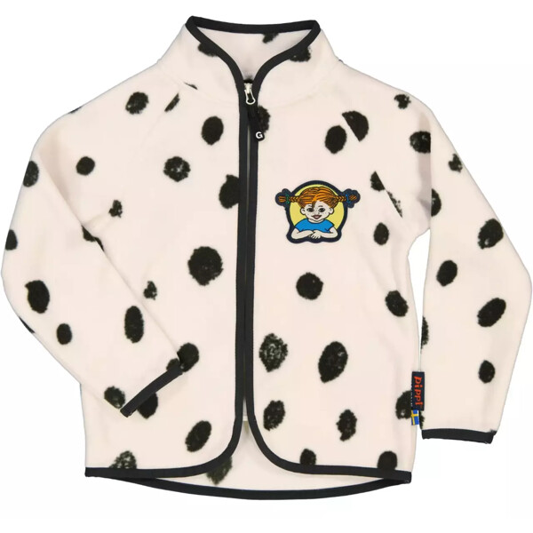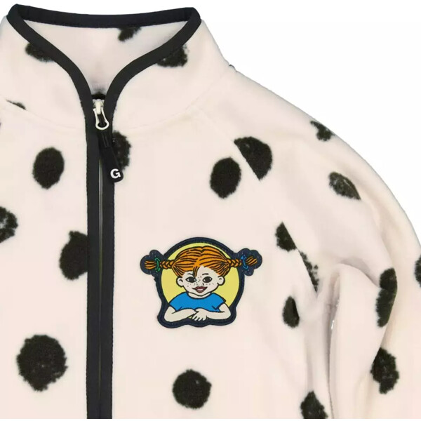 Den här mjuka och varma fleecejackan är lika busig som Pippi själv! Med Lilla Gubbens prickar som mönster blir den en riktig favorit för små äventyrare. Perfekt som vår- och höstjacka eller som ett skönt lager 2 under kyligare dagar. Jackan har elastiska kantband som gör att den sitter skönt på plats, vare sig man klättrar i träd eller hoppar i vattenpölar. Blixtlåset fram gör det enkelt att få på sig jackan snabbt – för vem har tid att krångla när det finns världar att upptäcka? En gosig och busig fleecejacka för små upptäckare som inte är rädda för att göra världen lite roligare.Geggamojas fleece är noggrant utvald för att vara trygg och skonsam för ditt barn. Fri från skadliga ämnen ger den en mjuk och säker känsla, utan kompromisser. Företaget ser till att inga oönskade kemikalier finns i materialet – bara gosig värme och bekväm kvalitet som håller länge. Ett tryggt val för både barn och miljö.