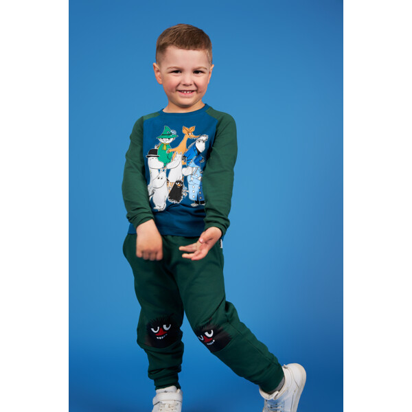 En mjuk och skön Mumin tröja för barn, i rak modell med lång raglanärm och rund halsringning. Produkten innehåller certifierad ekologisk bomull.
