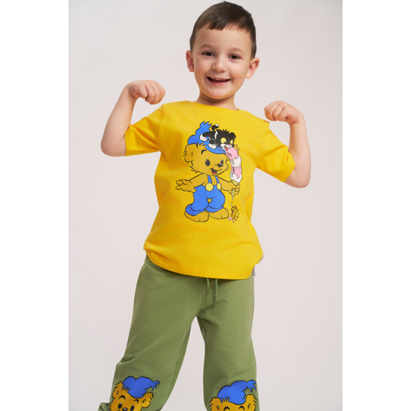 En mjuk och bekväm Bamse T-shirt för barn. I rak modell med korta ärmar, rund halsringning och roligt tryck framtill. Produkten innehåller certifierad ekologisk bomull.