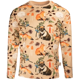 På skogstur! Dra på dig stövlarna (det gör inget om det blir på fel fot) för nu går vi på upptäcktsfärd i skogen. Men oj, är det en björn som kikar fram där borta? Räven skymtar också i sin vackra röda päls men kaninen ser så lugn och oberörd ut, så vi behöver inte heller känna oss rädda. Vi plockar fickorna fulla av kottar och ser om skogspysslingarna kanske visar sig! Denna skogsfina tröja är tillverkad i mjuk ekologisk bomullsblandning. Modellen är lätt oversized och avslappnad, så det finns inget som klämmer eller spänner. Snygg-tröjan hoppar in bland favoritplaggen lika lätt som räven skuttar från sten till sten. Öko-tex.