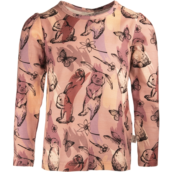 Sötchocksvarning idag? Den sockersöta kaninen ser ut som det allra mest älskade och sammetsmjuka gosedjuret, eller hur? Den är helt enkelt kramigt gosigt härlig när den leker med fjärilarna. Kram! Men du kan fortsätta leka, såklart, för barndomen är äventyr och upptåg, precis hela tiden. Oberoende om äventyret innebär kalas hos mormor, trädklättring eller kullerbyttsmaraton, så klarar denna kanintröja allt, och det med stil, tack vare puffärm och en vackert skuren modell. Tröjan är tillverkad i en mjuk och stretchig ekologisk bomullsblandning – och eventuellt en gnutta magi? Eller så är den helt enkelt skickligt formgiven. Öko-tex.