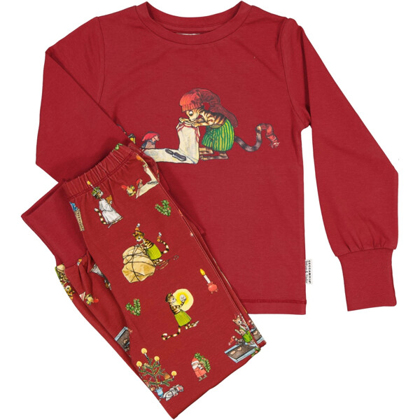 Pyjamas Pettson & Findus Jul Röd är en tvådelad pyjamas i mjuk och skön ekologisk bomull.