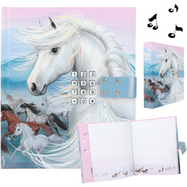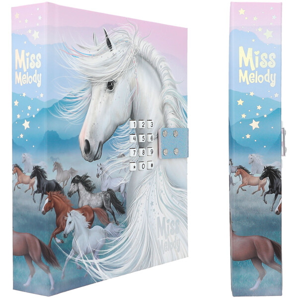 Alla dina tankar, hemligheter och personliga anteckningar förvaras stensäkert i denna vackra dagbok från Miss Melody med en kod som bara du vet. Dessutom spelas hitlåten INFINITY i ca 20 sekunder när du öppnar den.