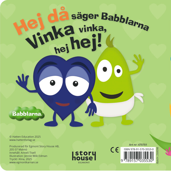 Fin spegelbok med de mycket populära Babblarna. Hej då, säger Babblarna. Vinka, vinka! Hej hej!