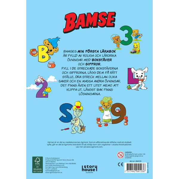 Bamse Min första lärabok Bamse "Min första lärabok" har 32 härliga sidor fyllda med bokstäver och siffror.