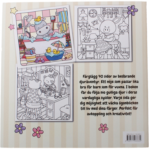Häng på den senaste Tiktok-trenden med "Cozy coloring books"! Färglägg en underbar målarbok med 40 sidor av bedårande djuräventyr. Ett nöje som passar lika bra för barn som för vuxna. I boken får du följa nio gulliga djur i deras vardagliga sysslor. Varje sida ger dig möjlighet att väcka ögonblicken till liv med dina färger. Perfekt för avkoppling och kreativitet!