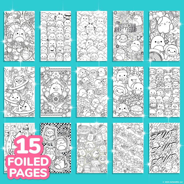 Innehåller 30 förtryckta designer med dina favorit-’Mallows — från en episk Squish-resa ut i rymden till en cool karaoke-battle och till och med extra illustrationer med folie! Det finns oändliga sätt att Squad Up! Den övre spiralryggen gör det enkelt att bläddra igenom eller riva ut sidor och dela med dina vänner — vad vill du färglägga först?