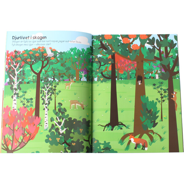 Varje uppslag har en ny scen från världens djurriken och en liten faktatext om djurens omgivningar. Husdjur, djur på bondgården, vilda djur i skogen, arktiska djur, djur i djungeln, små och stora fåglar här finns hundratals roliga klistermärken. Fyll på de färgglada miljöerna med märkena och skapa egna konstverk.En perfekt pysselbok för barn som gillar djur och natur!