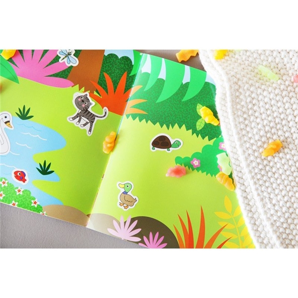 Stickerbok Djur är en rolig pysselbok med återanvändbara sidor med söta djur. Boken har 150 klisterbilder som kan användas om och om igen och 8 färgglada landskap att klistra på. Stickersboken är perfekt att ta med som underhållning på resan.