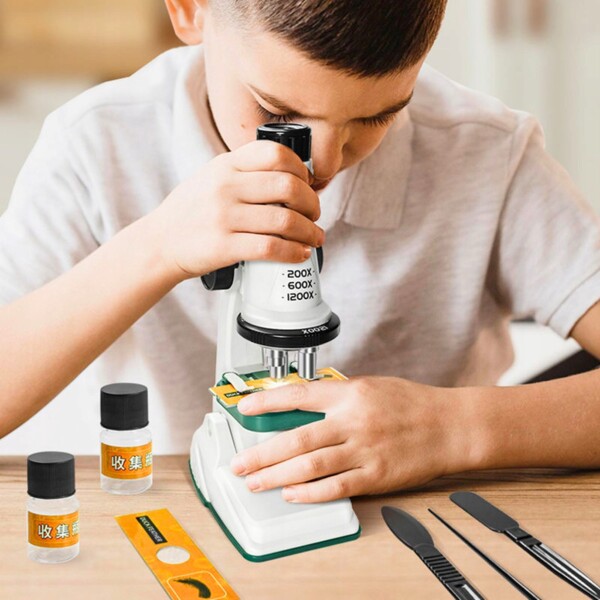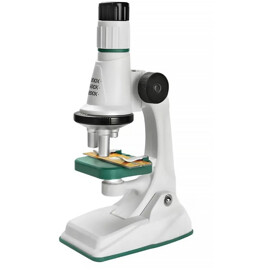 Ett klassiskt mikroskop med tillbehör.