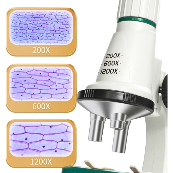 Med 200x, 600x och 1200x förstoring.