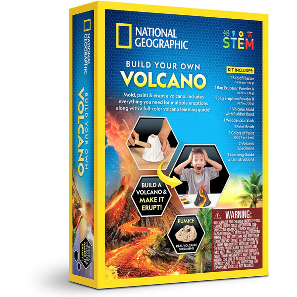 Du ska bygg en vulkan av gips som du sedan målar med de medföljande färgerna. Med hjälp av ett pulver kan du sedan göra så att din vulkan kan få ett utbrott!
