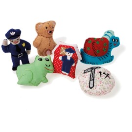 Polisman: Här är polisen som mitt i gatan står…Groda: Små grodorna…Snigel: Lilla snigel akta dig…Nallebjörn: Mors lilla Olle…Hammare: Jag hamrar, jag spikar…Bondgård: Per Olsson hade en bonnagård…Lämplig från 18 månader.Tillverkad av 35% bomull och 65% polyester. 40°C handtvätt.