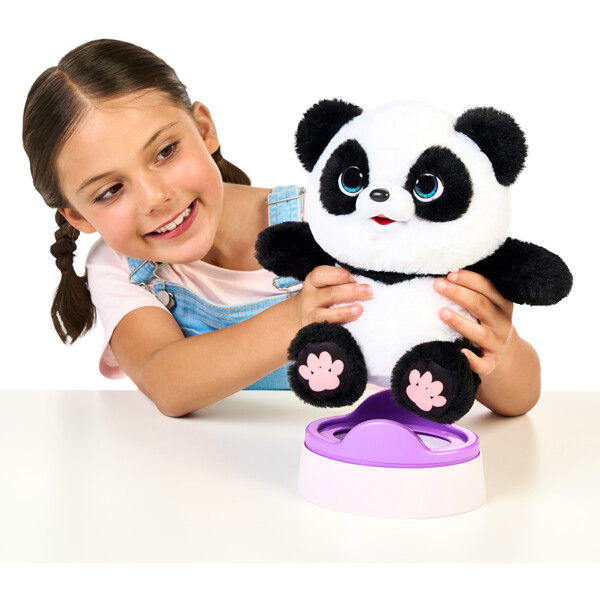 Little Live Pets Min Baby Panda! ChuChu, den lilla pandan, är det mest bedårande babydjuret du någonsin sett! ChuChu beter sig och låter precis som en riktig babypanda, med över 50 ljud och reaktioner.Mata och ta hand om ChuChu med bambumatningstillbehöret! När han är mätt och redo att leka, sparkar han sina bedårande små fötter!När det är dags, sätt ChuChu på pottan och se honom göra en liten pott-dans medan han sparkar med fötterna! Upptäck bajset i pottan och spola bort det för att leka om igen!ChuChu älskar att bli kittlad och gungad till sömns – han reagerar precis som en riktig bebis. Mata, älska, ta hand om och lek med din babypanda, och snart kommer ChuChu bli deras mest älskade bästa vän!Innehåller:1 x Interaktiv Gosig Panda1 x Potta1 x Bambumatningstillbehör3 x AA-Batterier1 x Adoptionsbevis1 x Instruktionsbok