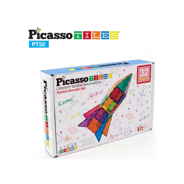 Picasso Tiles 32 Delar Rocket Booster är ett kreativt set med magneter. Magneterna uppmuntrar till fantasi och kreativitet som är nyckelfaktorn till framgång i dagens ständigt föränderliga miljöer. Setet är roligt och underhållande, en perfekt pedagogisk present till barn i förskole- och skolåldern som aldrig kommer att bli omodern.
