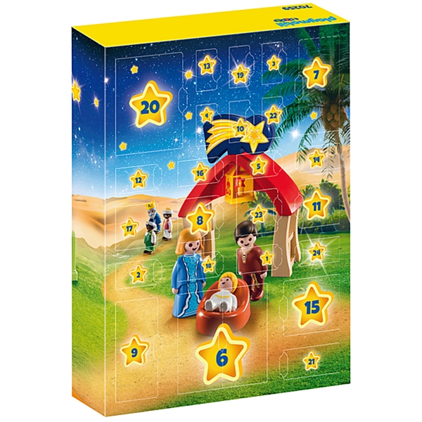 70259 Playmobil 1.2.3 Adventskalender Julkrubba gör den långa väntetiden till julafton mycket roligare, och kanske lite snabbare. I kalendern gömmer det sig 24 fina 1.2.3-figurer och delar från händelsen kring julkrubban. Här strålar polstjärnan över krubban och de allra minsta kan spela upp den fina julberättelsen. Tiden till julafton bara flyger fram med denna roliga adventskalender.