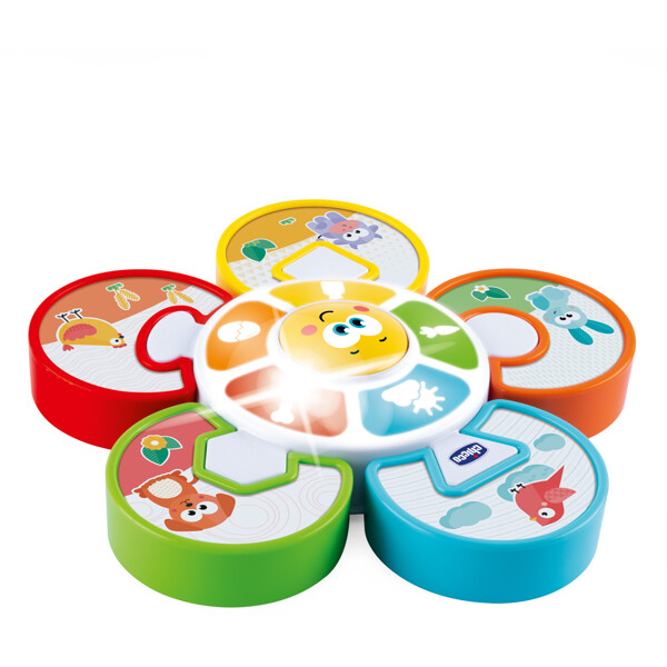 Chiccos 'Gissa Djuret Aktivitetscenter' är en rolig och färggladleksak som hjälper till att utveckla logisk koppling, kognitiva färdigheter och manuell koordination!