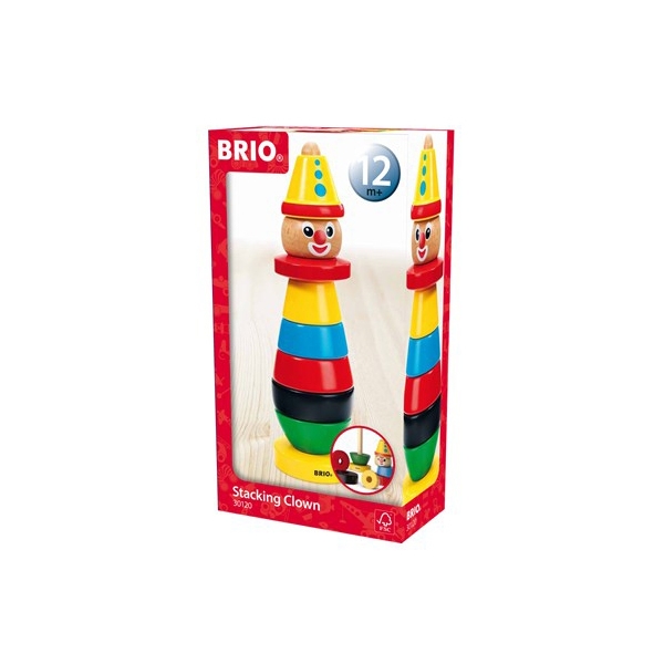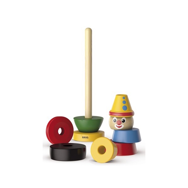 BRIO clownen har varit en ständig favorit ända sedan 1955. När barnet har lärt sig att stapla ringarna blir nästa steg att sätta dem i rätt ordning och att lära sig färgernas namn.