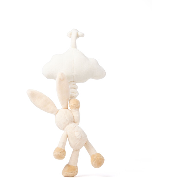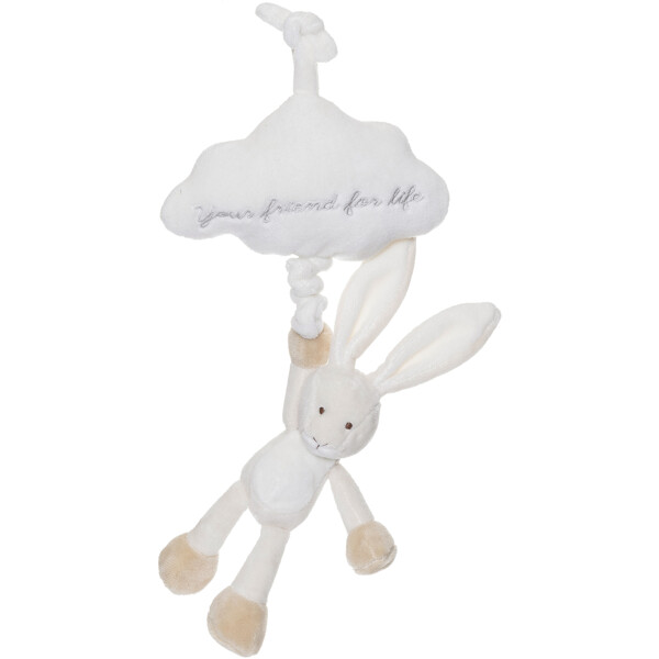 En söt speldosa i form av beige kanin med ett vitt moln, med texten "Your Friend for Life", att hänga i barnvagnen eller över spjälsängen.