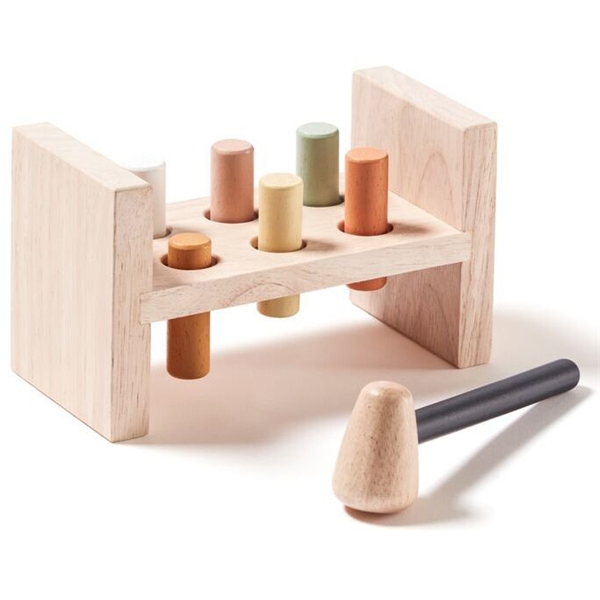 Kids Concept Hammarbänk NEO - Klassisk hammarbänk inklusive hammare. En rolig leksak där desmå kan öva på både på koncentration och koordination. Sex olikfärgade träbultar att hamra ner - gång på gång. När barnet har bankat ner bultarna så är det bara att vända på brädan och börja om igen. Mått: 20x10x12 cm. Material: Gummiträ.