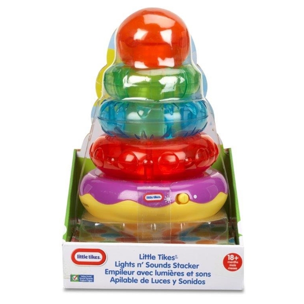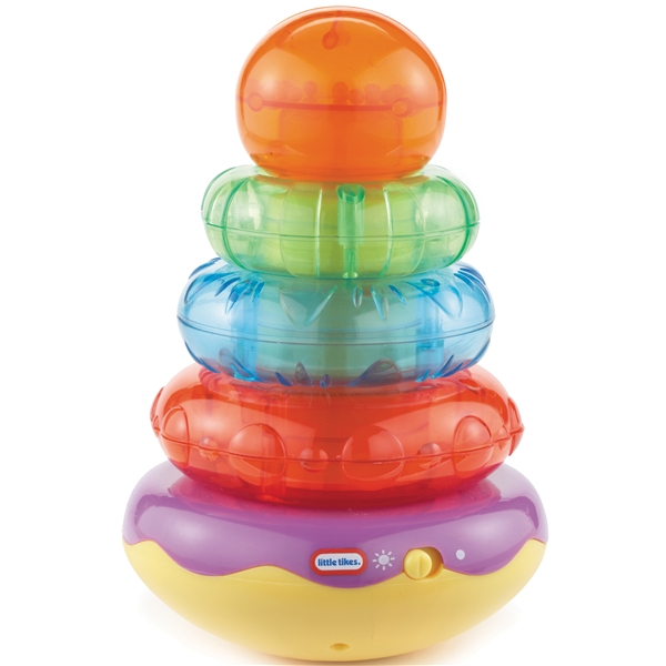 Little Tikes Plocktorn är en stor leksak som ger både små möjligheter att utforska former och färger och något större chans att bli utmanad att placera rätt former innan tiden rinner ut! Leksaken har tre olika stadier som kan följa ditt barns utveckling. Det första steget hjälper de små att lära sig om former och färger. När tecknen är placerade i rätt hål pratar leksaken och berättar vilken typ och färg som placerades. I det andra steget frågar leksaken barnet att hitta en särskild form, färg eller nummer. Om barnet då väljer fel leksak, då öppnas botten och figuren faller ut. I det tredje steget berättar leksaken, om former och färger barnet måste hitta och placera korrekt innan tiden rinner ut. Inkluderar: 6 olika former och färger.