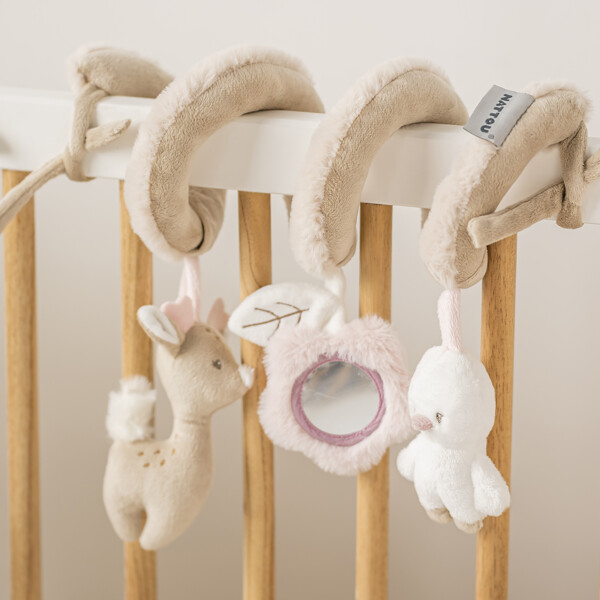 Denna mjuka aktivitetsspiral från Nattou är den perfekta följeslagaren för din bebis, både hemma och på språng. De glada figurerna med skallra, pip och kruspapper väcker nyfikenhet och inbjuder små händer att gripa tag i och utforska. På så sätt stimuleras både känsel och hörsel på ett lekfullt sätt. Tack vare sin flexibla form kan spiralen enkelt fästas på en spjälsäng, vagga, bilbarnstol eller barnvagn. Ett färgglatt tillbehör som ger oändlig lekstund och är en underbar babypresent för alla tillfällen.Produktspecifikationer:Mjuk aktivitetsspiral med glada figurerUtrustad med skallra, pip och kruspapperStimulerar greppförmåga, känsel och hörselLätt att fästa på en spjälsäng, vagga, lekhage eller bilbarnstolPerfekt för hemma och på språngSkötsel: handtvätt, torktumlas ej