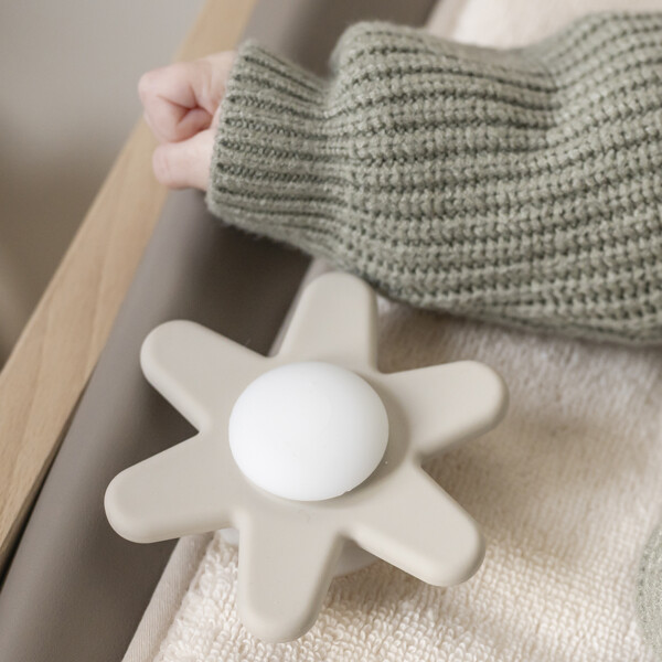 Använd sugkoppen för att fästa babysnurran på vilken yta som helst! Och iväg och lek! Vare sig det är vid bordet eller i badet, kommer babyn att älska att snurra kronbladen som en propeller!En pedagogisk leksak som stimulerar ditt barns finmotorikMaterial: Silikon BPA-friStorlek: 9 x 9 x 3,5 cmLätt att sköta: tvättbar med vatten och tvål