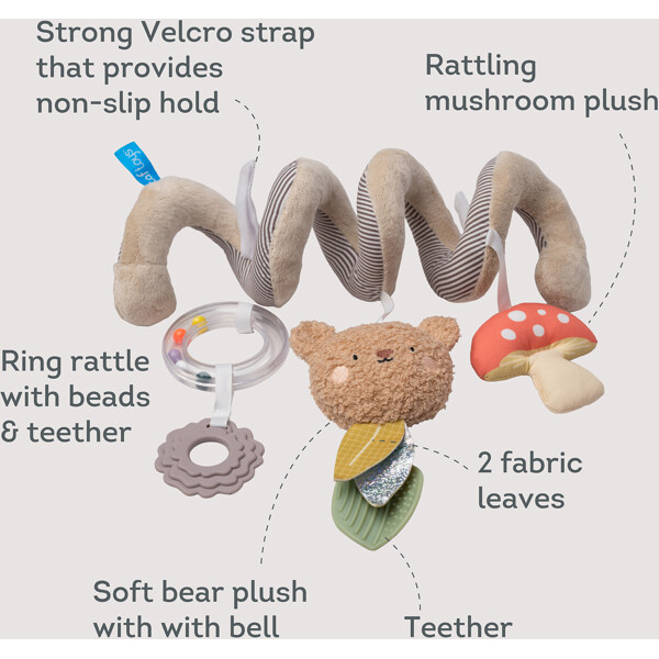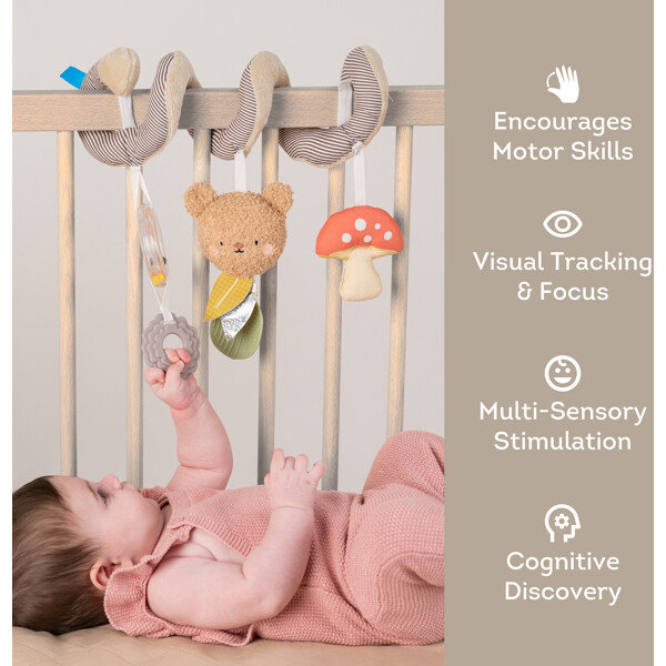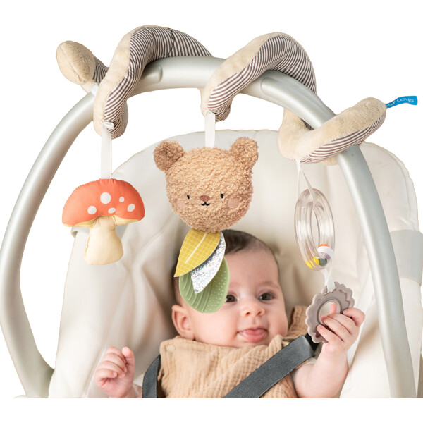 Underhållning på resan – alltid inom räckhåll!Taf Toys Bear Hug Spiral är den perfekta leksaken för bilbarnstolen eller vagnen. Den mjuka spiralen fästs enkelt och har färgglada hängande leksaker som bitringar, kulringar och en söt nalle – allt för att stimulera ditt barns sinnen och finmotorik från nyfödd upp till 6 månader.Lätt att ta med, säker och multifunktionell – gör varje resa lugnare och roligare för både barn och föräldrar.