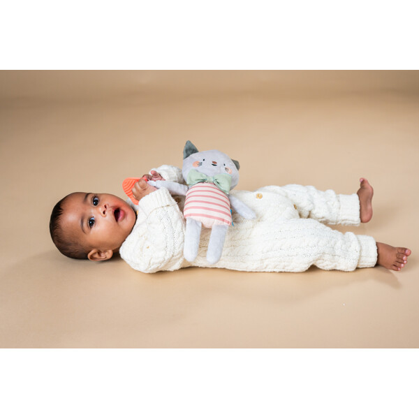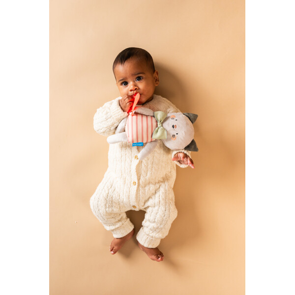 Kattkompis med lugnande bitring och mjuka tyger, perfekt för spädbarn och små barn tack vare storlek och texturer.