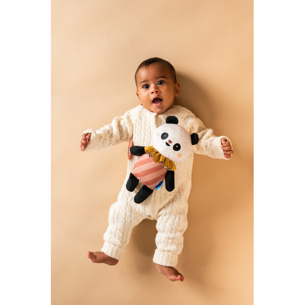 Pandakompis med lugnande bitring och mjuka tyger, perfekt för spädbarn och små barn tack vare storlek och texturer.