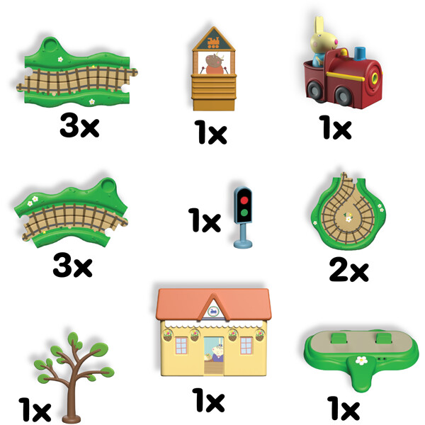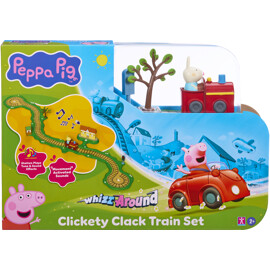Peppa Pig Whizz-Around är en vackert detaljerad och färgglad serie av spår- och fordonsleksaker som för Peppa Pigs värld till liv på ett helt nytt sätt!Peppa Pig Whizz-Around Clickety Clack Train Set innehåller Rebecka Kanins Lilla Röda Tåg, tillsammans med tågspår, tillbehör och Tågstation med rörelsestyrda ljudeffekter! Spåren kopplas ihop med ett enkelt pusselsystem som är perfekt för små händer att sätta ihop. Anpassa spåret med tillbehör. Tryck sedan på knappen på tåget och se Rebecka åka! När tåget passerar stationen hör du melodier, fraser och ljudeffekter!Peppa Pig Whizz-Around är perfekt för att uppmuntra fantasifull lek och utveckla finmotorik och hand-ögon-koordination. Bygg din egen Peppa Whizz-Around-värld och skapa roliga äventyr för Peppa och hennes vänner.Innehåller:6 x Tågspår2 x Tågspårsvängar1 x Rebecka Kanins Lilla Tåg1 x Herr Bulls Signalhus1 x Tågtrafikljus1 x Träd1 x Tågstation1 x Elektronisk bas4 x AAA-batterier krävs (ingår ej).