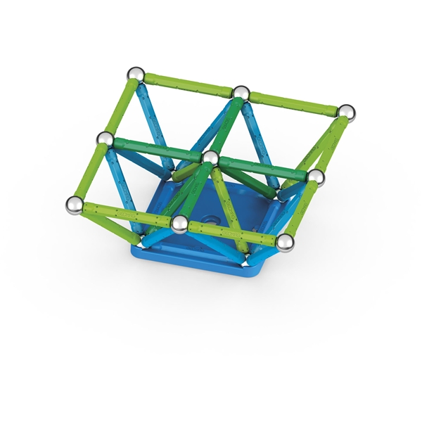 Med magneter kan du bygga de mest fantasifulla konstruktioner och utveckla din kreativitet. Setet innehåller magnetstavar, metallkulor, plastskivor av 100 % återvunnet plast, förvaringslåda och instruktioner.