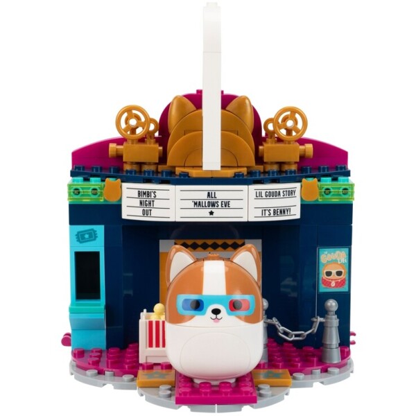 Ta en tur till biografen med Reginald! Det här Squishmallows-byggsetet är inspirerat av en kväll i en snyggt dekorerad biograf och innehåller klassiska biotillbehör, en markis med Squishmallows-filmtitlar och en neonskylt med Cam-tema.