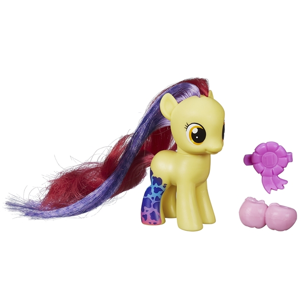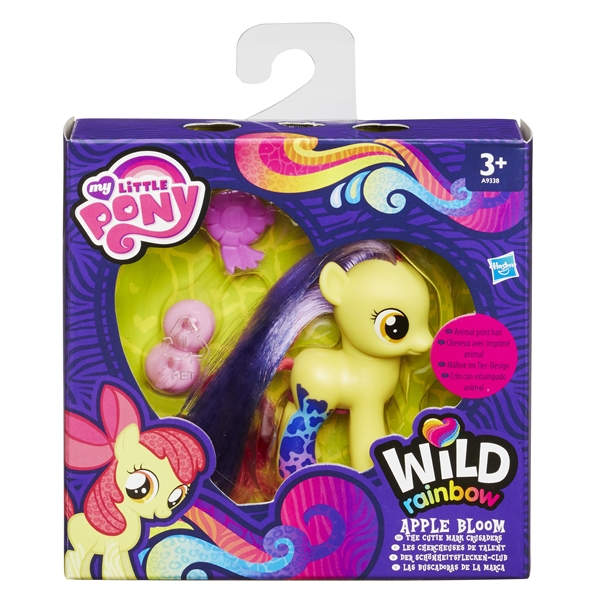 My little Pony Friends - Apple Bloom är en ponny från populära My Little Pony. Nu har hästkompisarna Apple Boom, Sweetie Belle och Scootaloo en ny och ”vildare” stil. Varje häst har djurmönstrad man och svans och djurmönstrade dekorationer samt två tillbehör som fullbordar den nya stilen. Apple Bloom som är lillasyster till Big Macintosh och Applejack och en medlem av Äppelfamiljen i Ponyville. Hon är en bifigur som tar en ledande roll i flera avsnitt. Apple Bloom är en av Cutie Mark Crusaders trion, tillsammans med Sweetie Belle och Scootaloo och hon var den enda skolåldersponnyn vid namn tills Cutie kallar. Hon har inte sin cutie mark än.