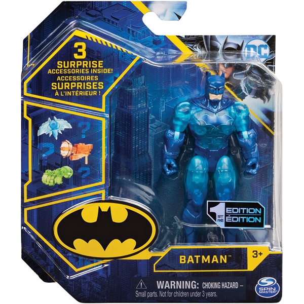 Batman Blå 10 cm Figur är en häftig action-figur från Gotham City. Batman har böjbara leder och kan ställas i flera olika positioner. I paketet kommer det 3 st hemliga överraskningar.