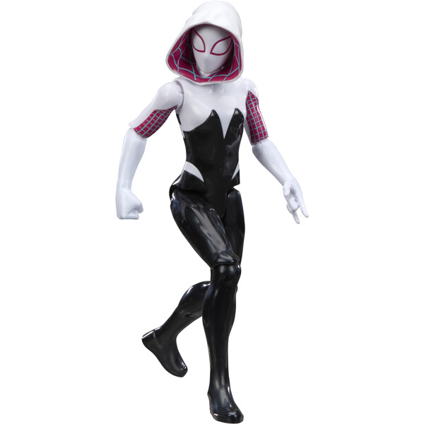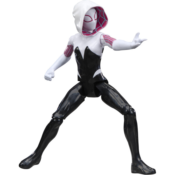 Med den klassiska designen i svart, vitt och rosa samt 11 böjbara punkter. Den här Ghost-Spider Spidey-leksaken är 27,9cm hög och utformad till en 30cm skala. Barn kan återskapa sina favoritögonblick eller föreställa sig nya och spännande superhjälteäventyr med denna Marvel-figur.
