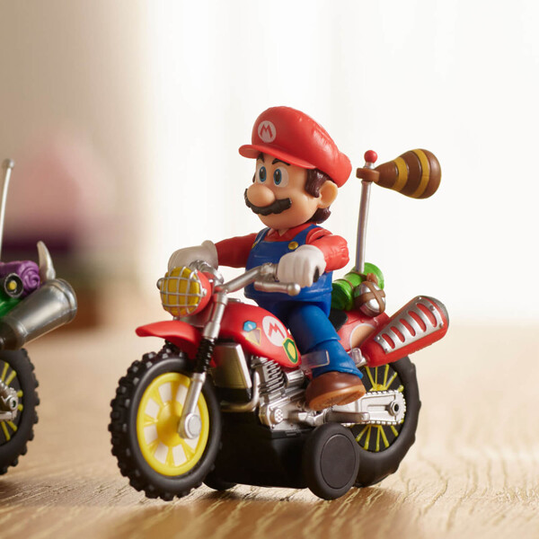 Samla dina favoritkaraktärer med The Super Mario Galaxy Movie 6 cm-figuren med ett fordon som dras bakåt. Inspirerad av filmen har Mario-figuren unik rörlighet som gör att han kan sitta på sin motorcykel. Dra tillbaka och se honom åka iväg!