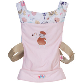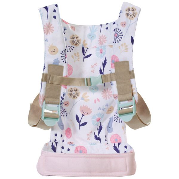 Den här bekväma dockbärselen i mjuk rosa med blommönster gör att 36 cm och 43 cm långa dockor kan bäras säkert - antingen framåtvända eller vända in mot dockföräldrarna.