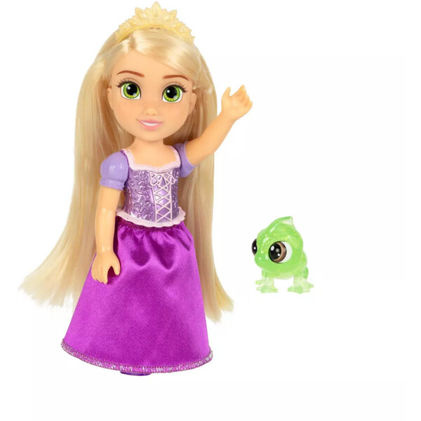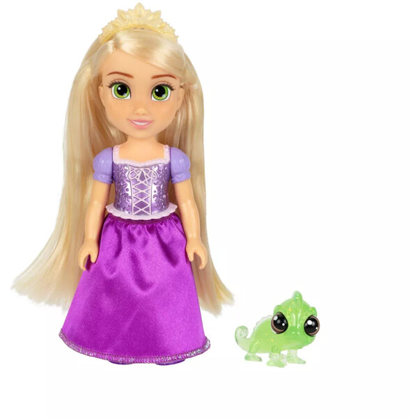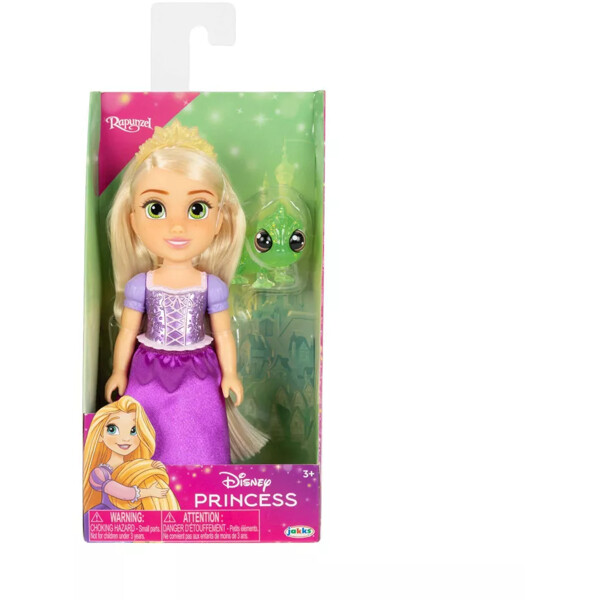 Tornet kan inte längre rymma dem: Rapunzel och hennes pålitliga kameleontvän är redo för världen utanför! Den här lilla dockan på 15 cm har perfekt storlek för lek på språng.