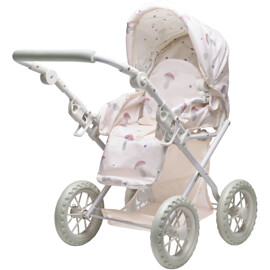 Låt barnet gå ut på promenad med denna dockvagn. Vagnens säte kan justeras, så att dockan kan ligga och sova eller kanske sitta upp och titta på vad som händer.