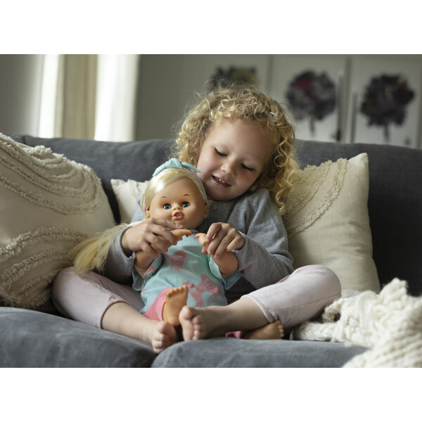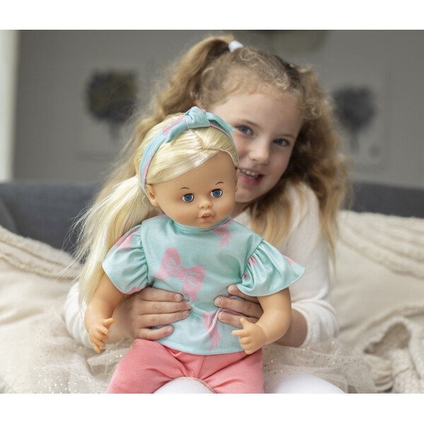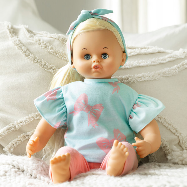Setet innehåller en t-shirt, byxor och hårband. Dockkläderna är lätta att ta av och på för ombyten och nya äventyr. Vad ska dockan och barnet hitta på idag? Låt barnets fantasi visa vägen!