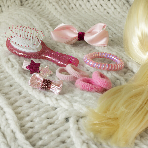 Hårset i glada, lekfulla färger och passar dockor i olika storlekar.