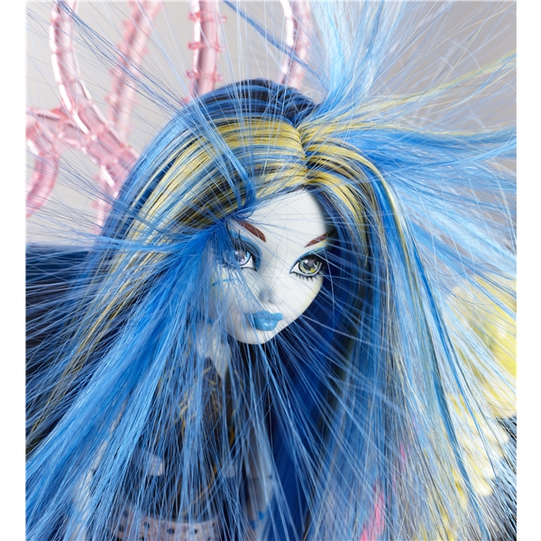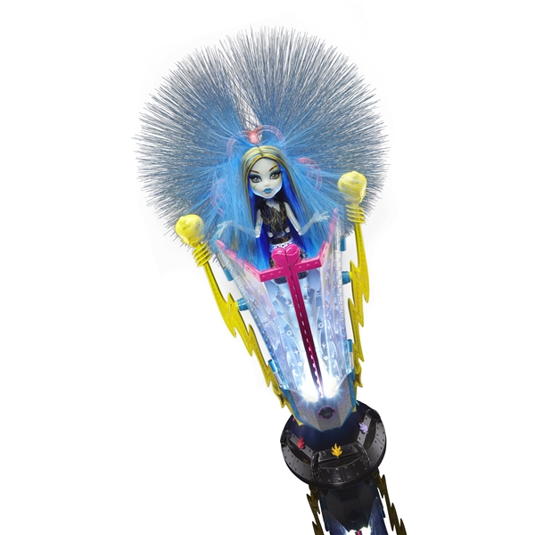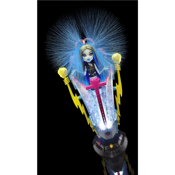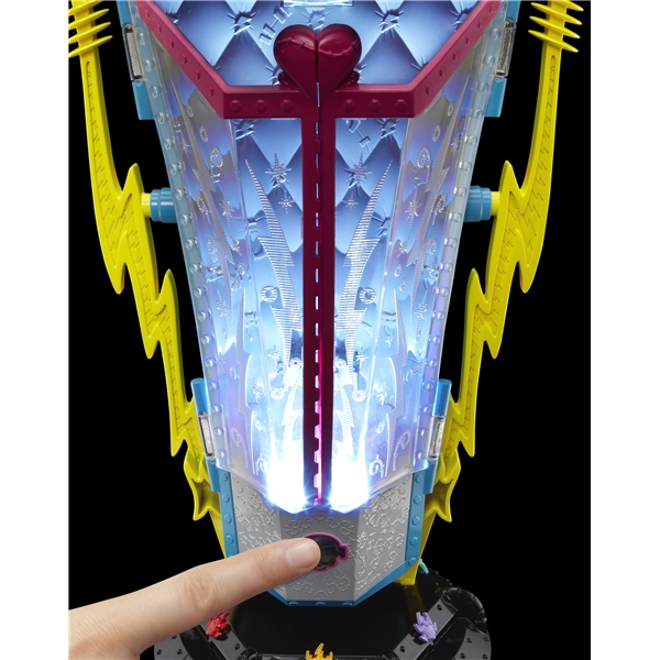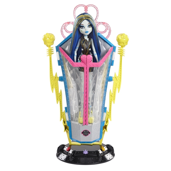 Monster High Freaky Fusion Chamber Playset är en superhäftig Freaky Fusion figur och energikammare från MONSTER HIGH. Den här MONSTER HIGH-energikammaren är verkligen hårresande: Placera Frankie Stein – dotter till Frankenstein – i kammaren och tryck sedan på knappen för att se hennes hår resa sig i en elektrisk frisyr. Kammaren kan också användas som en unik lampa. Tryck bara på knappen igen för att aktivera en cool ljusshow. Frankie Stein-figur med tillbehör och hårborste medföljer.