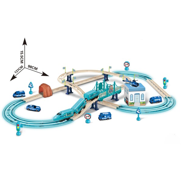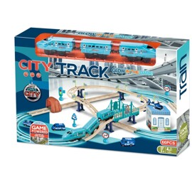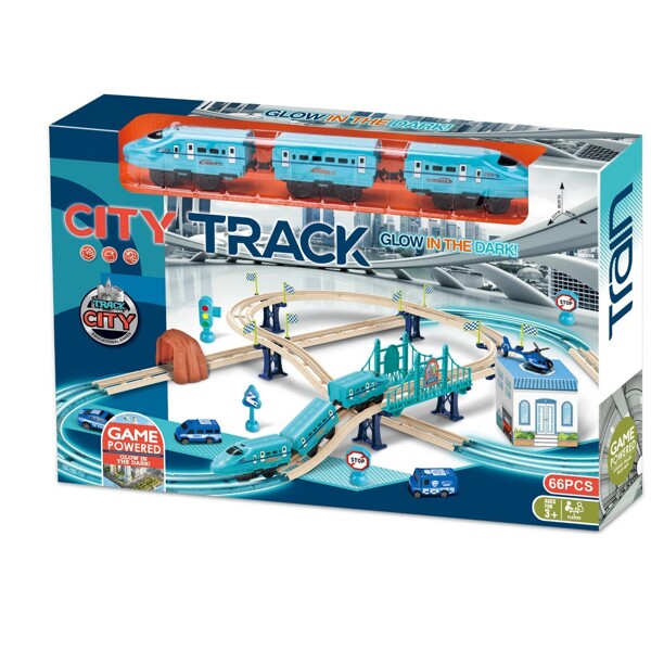 Tågbana glow in the dark i polistema med musik. Lätt att montera och ta isär. Perfekt present till alla som gillar fordon och fart! Totalt 66 delar.