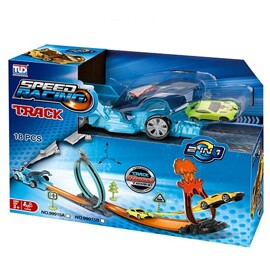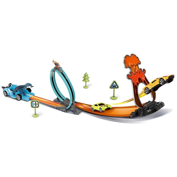 En racerbil med bil - Skjut ut bilen ur racerbilen, genom loopen för att sedan se den flyga iväg!