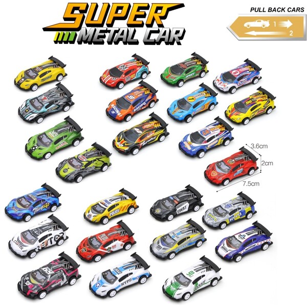 18 st häftiga die-cast racingbilar med pullback funktion.