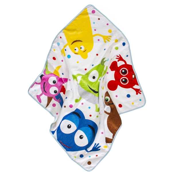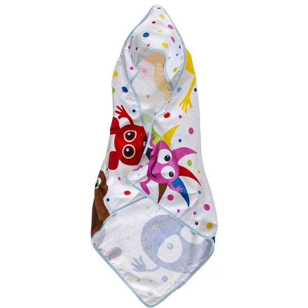 Babblarna badcape med ett fint och färgglatt prickigt motiv är till de minsta. Med en påsydd huva är den praktisk att svepa in ditt barn i efter badet. Storlek 75x75 cm. Kvalitén är 100% bomull. Tvättbar 60 grader.
