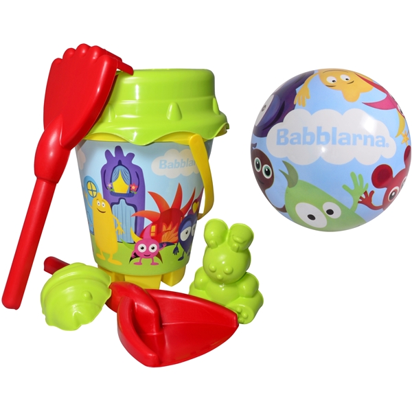 Babblarna Boll + Hinkset - Set med hink, spade, sil, tre sandformar och boll.