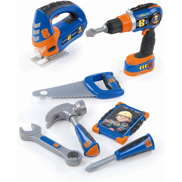 Byggare Bob Verktygsset - Bli lika händig som Byggare Bob! Detta verktygsset inkluderar sticksåg, borrmaskin, såg, hammare, skiftnyckel, skruvmejsel och id-bricka. 2 x 1,5V AA-batterier ingår. Samla resten av verktygen från Byggare Bob-serien och bli en riktig mästarsnickare!