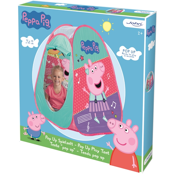 Ett pop-up tält i glada fina färger med Greta Gris på. Perfekt när barnet vill leka ifred, ta en tupplur eller läsa en saga. Ta med tältet på utflykt för lite skugga till barnet. Dörren in till tältet går att fästa i kardborrebanden ovanför dörren för att det ska kunna vara enkelt att ta sig in och ut. OBS! Tältet har inget UV-skydd!